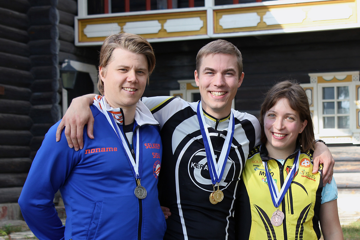 Tarkkuussuunnistuksen SM-kisat käytiin viikonloppuna Nurmeksessa. Tempossa ja normaalikisassa saatiin sama mitalikolmikko: Antti Rusanen, Lauri Kontkanen ja Pinja Mäkinen. Kaksipäiväisessä normaalikilpailussa Rusasen voitto heltisi yhden pisteen turvin ennen Kontkasta. Mäkinen jäi Rusasesta jo kolme pistettä, joten ero oli selvä. Mäkinen puolestaan ratkaisi pronssin nimiinsä nopeiden ja oikeiden aikarastiratkaisujen ansiosta, sillä peräti viisi kilpailijaa keräsi radalta samat pistemäärät. Kilpailijat pitivät ratamestarin ratkaisusta järjestää normaalikilpailu kahtena päivänä. Myös kilpailun voittanut Rusanen piti ratkaisua hyvänä: -Normaalikilpailussa oli mukava päästä kahteen erilaiseen maastoon, kun kilpailu järjestettiin kahdessa osassa. Erityisesti kaukorastit olivat normaalikilpailussa haastavia. Aikarastitehtäviin perustuvan tempokisan Rusanen voitti 41 sekunnin erolla ja tempossakin Mäkinen jäi jo selvemmin kärkikaksikosta. Tempokilpailun kahdeksan ensimmäistä rastiasemaa ratkottiin lauantaina Hyvärilän leirintäalueella. Rastikohteina käytettiin pääosin kasvillisuuskohteita ja leirintäalueen rakenteita. Tempokilpailun kakkosasema pääsi yllättämään kilpailjat, kun rastit olivatkin kaukana kallion laella golfkentän takana. Sunnuntaina tempokilpailun loppuratkaisu käytiin kesäteatterilla. -Tempossa suoritus oli hyvin hallussa alusta loppuun, ja selkeissä paikoissa uskalsin vastata todella nopeasti. Oli mukavaa, että Lauri Kontkanen tuli tauon jälkeen takaisin kilpailemaan ja osoitti olevansa loistokunnossa, Rusanen kertoo.