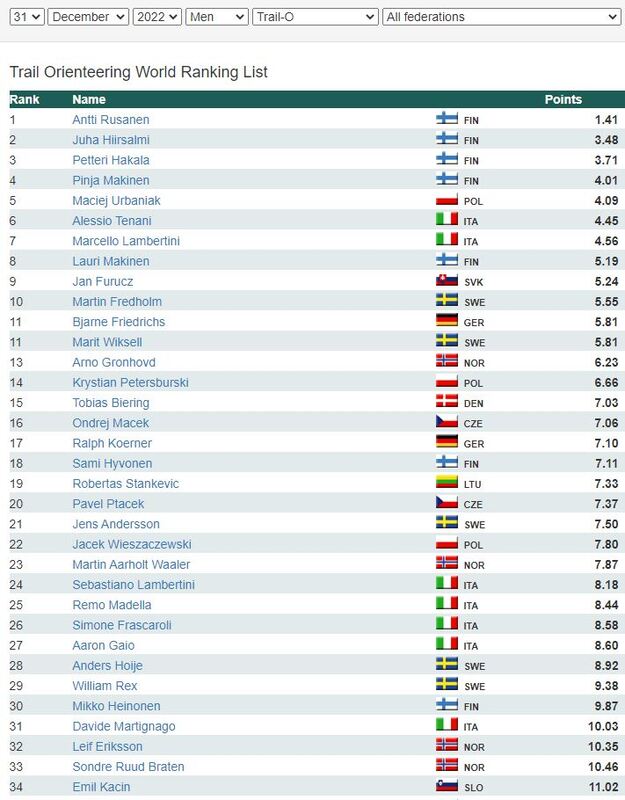 Vuosi päättyy ja uusi alkaa ja WRE:n kärkipaikkaa on pitänyt koko kauden ja pitää edelleen ylivoimaisesti Antti Rusanen. Seuraavilla sijoilla ovat vuorotelleet Pinja Mäkinen, Petteri Hakala, Lauri Mäkinen ja Juha Hiirsalmi. EM-kisojen päättyessä suomalaisilla oli hallussa jopa 5 ensimmäistä sijaa. Parhaana ulkomaalaisena kauden päättyessä on Maciej Urbaniak sijalla 5. Kauden aikana ulkomaalainen oli parhaimmillaan sijalla 3, kun Alessio Tenani lokakuun alussa nousi viikoksi tuolle sijalle. Poikkeuksellisesti vuoden vaihtuminen muuttaa tilannetta rankilla. Covid-ajan rankipisteet ovat vanhentuneet 32 kuukauden kuluttua, mutta 1.1. alkaen palataan normaaliin 18 kuukauden jaksoon. Se ei (tietenkään) muuta Antin tilannetta kärjessä, mutta muiden osalta sijoitukset muuttuvat. Seuraava päivämäärä, jolloin rankilla on muutakin merkitystä kuin kilpailijoiden oman egon vahvistaminen on 2.4.2023. Kyseisen päivän rankin 15 parasta saavat henkilökohtaisen paikan kesän MM-kisoihin. Suomalaisista paikat näyttäisivät menevät Petterille ja Antille Open-sarjassa ja Pekka Seppälle P-sarjassa. Toki ennen sitä on kalenterissa vielä yksi kilpailu Hong Kongissa, mutta se ei mitä todennäköisimmin tule vaikuttamaan kärkipään sijoituksiin. |
