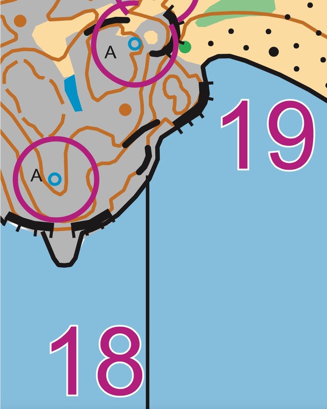 Kuvasta voi tulkita miksi rasti nro 18 hylättiin. Vastaus oli A-lippu, mutta jury hylkäsi tehtävän protestin jälkeen. Lippu oli liian lähellä merta ja oikeassa paikassa on uutta "kohoumaa".