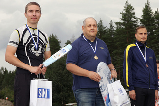 ![]() SM Preo mitalistit. Vasemmalla Antti Rusanen hopeaa, keskellä Martti Inkinen kultaa ja oikealla Veli-Matti Rintala pronssia. Kuva Esko Junttila |